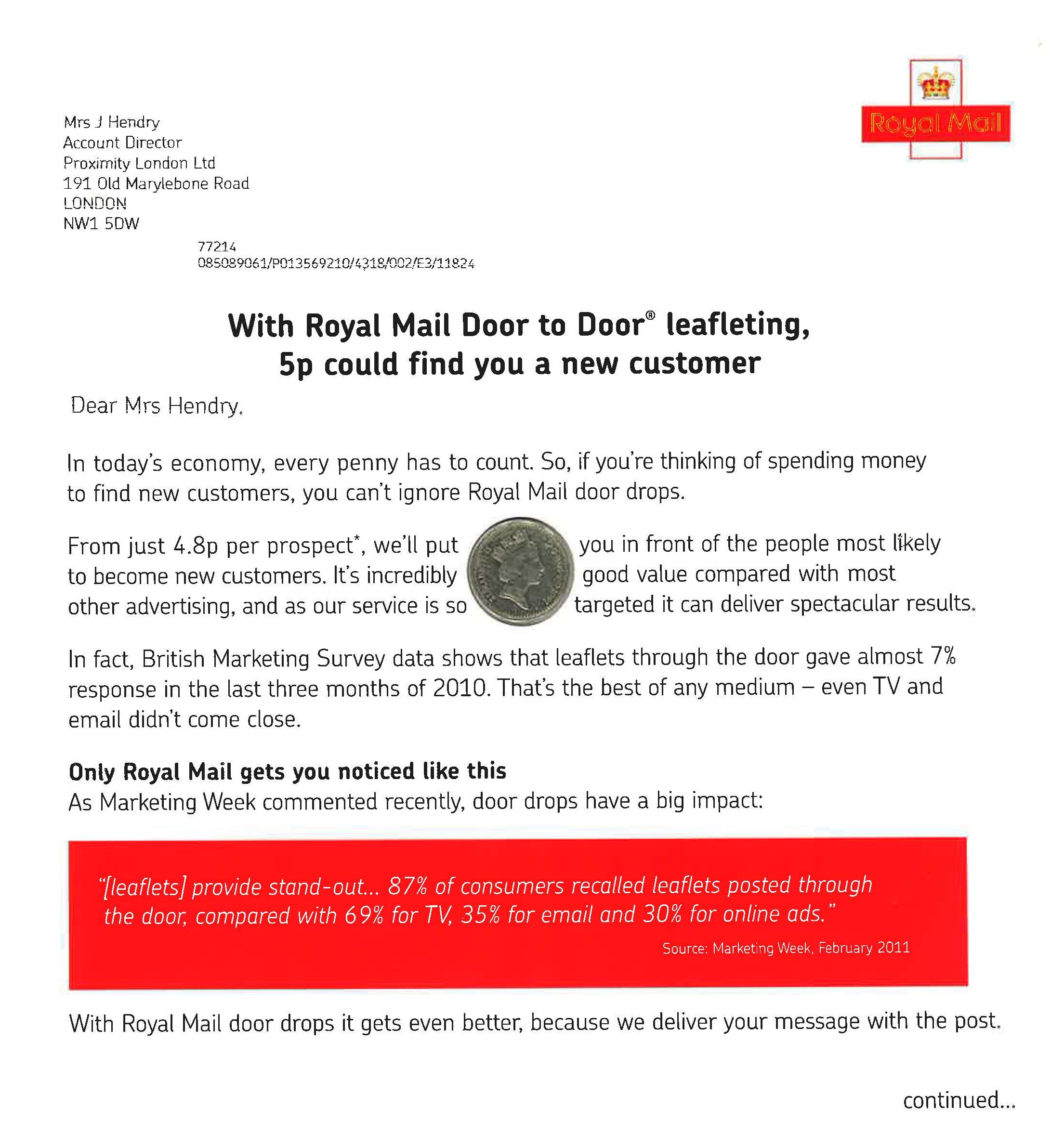 In business, 5p doesn’t usually go very far. But with a Royal Mail door drop, it could buy a new customer.